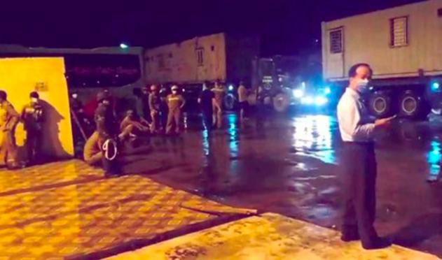 Các đối tượng còn phá cổng sắt, đập phá cửa, sử dụng vỏ container, khối bê tông chặn lối đi lại tại khu B, bến xe Thượng Lý. Dùng xích khóa 18 ô tô khách của Công ty TNHH Vận tải Kết Đoàn (Công ty vận tải Kết Đoàn) gửi tại bến xe trong thời gian tạm dừng hoạt động vì dịch bệnh COVID-19.