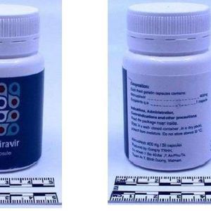 Hải quan Thụy Sỹ đã phát hiện thuốc giả Molnupiravir 400mg, quy cách đóng gói: lọ 20 viên nang cứng, trên nhãn có thông tin ghi “Manufactured by Công ty TNHH, Chi nhanh 1 so 40 dai, P. An Phu, Tx. Thuan An, Tinh Binh Duong, Vietnam”.