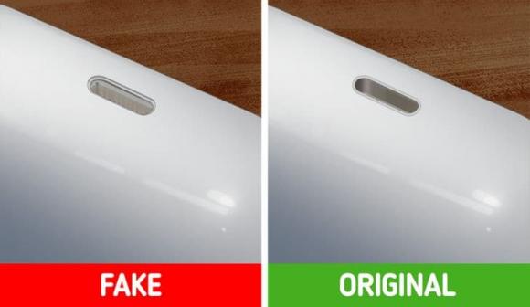 Mặc dù thực tế là khá dễ dàng để sao chép bao bì gốc, nhưng các nhà sản xuất hàng giả thường mắc lỗi ở khâu này. Ví dụ, họ áp dụng một nhãn dán có thông tin trên đầu hộp, trong khi Apple áp dụng nó cho phần dưới cùng của hộp.