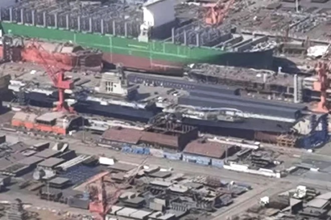 Tàu sân bay được đóng tại nhà máy đóng tàu Giang Nam ở Thượng Hải. Thành phố 25 triệu dân này đã bị phong tỏa do Covid-19 kể từ đầu tháng 4.