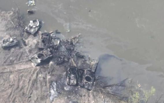 Hình ảnh được Bộ Tư lệnh Không quân Ukraine công bố cho thấy một số phương tiện quân sự đang bốc cháy gần các đoạn cầu phao bị sập nằm nửa chìm nửa nổi trên sông, cùng nhiều phương tiện đã bị hư hại nặng hoặc bị bỏ lại gồm xe tăng.