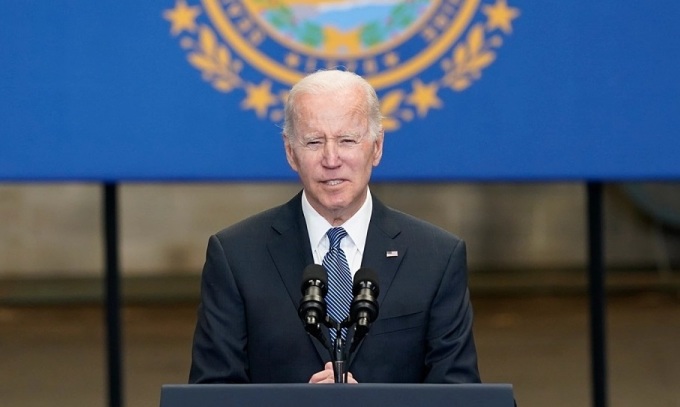 Tổng thống Mỹ Joe Biden phát biểu tại Portsmouth, bang New Hampshire, Mỹ hôm 19/4. Ảnh: AP.