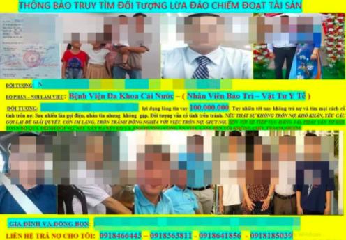 Theo đó, khoảng 2 tháng trở lại đây, một lãnh đạo và nhiều nhân viên của bệnh viện bị lấy hình ảnh đăng lên mạng xã hội rồi vu khống, bêu tên, xúc phạm danh dự để đòi nợ.