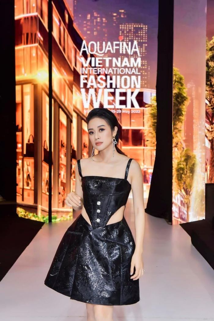 Trong ngày thứ hai của Tuần lễ thời trang, Phí Linh diện chiếc váy đen có thiết kế cut-out ở phần eo, giúp tôn lên vẻ gợi cảm nhưng vẫn tinh tế, thanh lịch. Nữ MC tiết lộ: "Phí Linh chưa bao giờ chụp bikini, chưa bao giờ mặc hở eo, mà NTK Nguyễn Tiến Truyển làm đồ đẹp quá, giỏi quá nên vui vẻ được hở''.