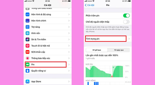 Với điện thoại iPhone, bạn có thể trực tiếp kiểm tra độ chai của pin khi vào phần cài đặt.