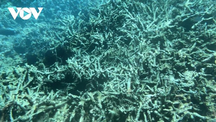 Đáy biển Hòn Mun san hô chết hàng loạt, màu xám xịt.