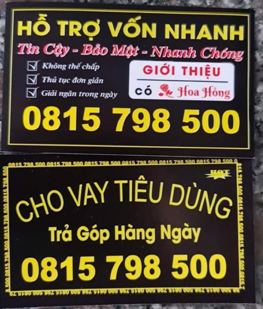 Tờ rơi được các đối tượng cho vay nặng lãi rải để thực hiện hoạt động cho vay nặng lãi trên địa bàn tỉnh Thừa Thiên-Huế. Ảnh: Công Quang