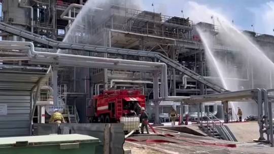 Một đoạn video ngắn được đăng trên mạng xã hội ghi lại cảnh một chiếc UAV bay gần đến nhà máy lọc dầu và lao vào với tốc độ tối đa. Vụ va chạm dẫn đến một vụ nổ lớn, ngọn lửa sau đó ngay lập tức bùng lên.