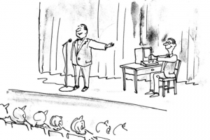 – Tôi không thuật lại câu chuyện mà chỉ nói với họ là ngài vừa kể một câu chuyện cười, đề nghị cả hội trường cười to lên.