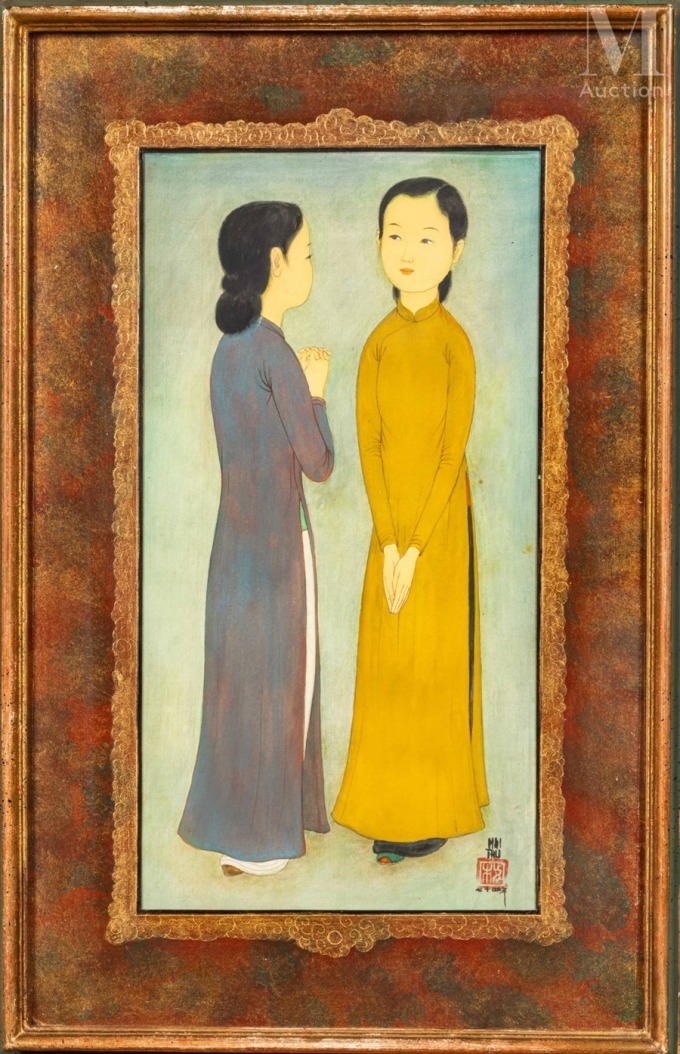 Phiên đấu giá giới thiệu hơn 20 tác phẩm của các danh họa nổi tiếng thời Đông Dương như Nguyễn Nam Sơn, Mai Trung Thứ... Bức lụa vẽ hai phụ nữ Cuộc gặp gỡ, 1974 của Mai Trung Thứ cao thứ hai khi được chốt ở mức 140 nghìn euro (3,4 tỷ đồng). Tác phẩm sơn mài Chùa Thái Lan của Trần Phúc Duyên đứng thứ ba với 80 nghìn euro (1,9 tỷ đồng).