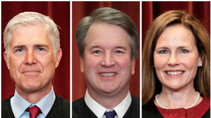 Ba thẩm phán Neil Gorsuch (trái), Brett Kavanaugh (giữa) và Amy Coney Barrett được ông Trump đề cử trong nhiệm kỳ. Ảnh: NBC.
