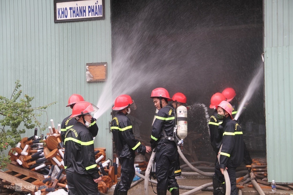 Đám cháy bùng lên ở công ty sản xuất đồ gỗ trong khu công nghiệp tại TP Quy Nhơn suốt 3 giờ khiến nhiều hàng hoá bị thiêu rụi, sáng 3/7.