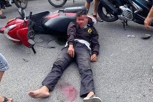 Trên đường trộm xe máy rồi bỏ chạy, nam thanh niên tông vào một phương tiện khác và ngã văng xuống đường, bị thương nặng.