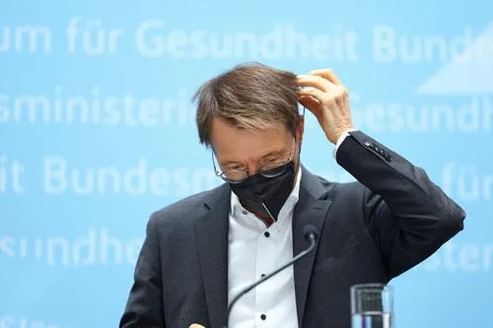 Bộ trưởng Y tế Đức Karl Lauterbach đeo khẩu trang trong một cuộc họp báo về Covid-19 hôm 1-7 Ảnh: REUTERS