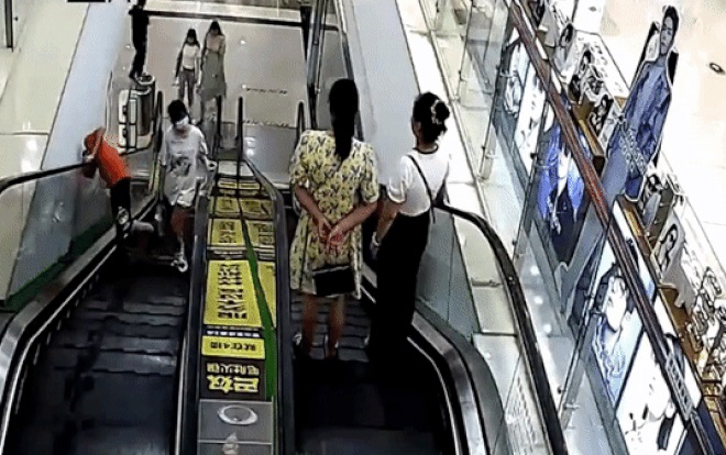Theo như được biết sự việc xảy ra vào ngày 24/6 vừa qua và được camera an ninh trung tâm thương mại ghi lại. Lúc đó, có một cậu bé mặc áo phông màu cam đang di chuyển trên thang cuốn của siêu thị cùng với chị gái của mình, trong lúc đó có rất nhiều người có mặt tại siêu thị đã cố gắng giải cứu bé trai đang mắc kẹt nhưng không thành công.
