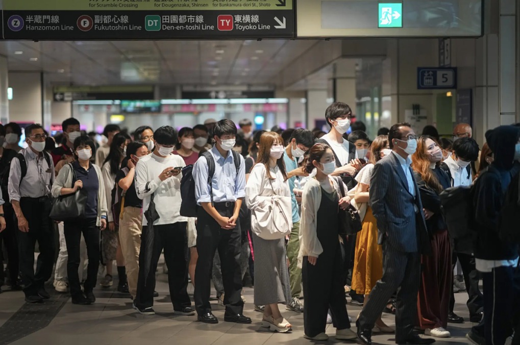 Hành khách tại ga Shibuya ở Tokyo, Nhật Bản vào cuối tháng 6. Ảnh: NY Times