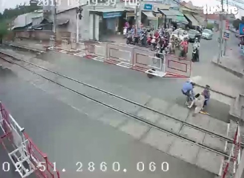 Vào khoảng 19 giờ 35 phút ngày 5/7, tại đường ngang Km 1656+004 tuyến Đường sắt Thống Nhất (thuộc phường Xuân lộc, TP Long Khánh, tỉnh Đồng Nai), một nhân viên gác chắn tàu đã kịp thời cứu người đàn ông thoát chết trong gang tấc khi tàu đi qua.