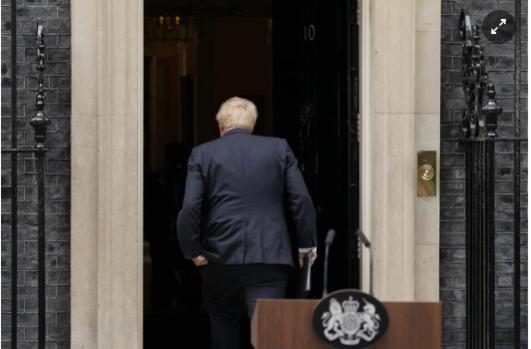Ông Johnson bước vào Văn phòng Thủ tướng Anh ở số 10 phố Downing, London sau bài phát biểu từ chức ngày 7/7. Ảnh: AP.