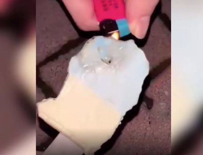 Trong đoạn video có thể thấy khói bốc lên khi ngọn lửa chạm vào kem, và người thử nghiệm cũng nói có mùi thức ăn cháy.