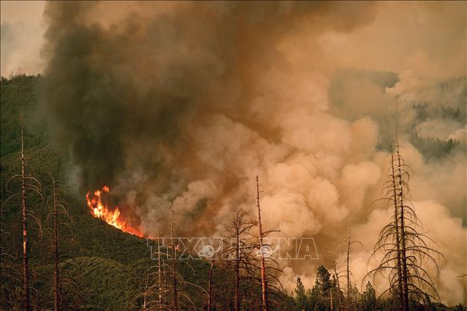 Khói lửa bốc lên từ đám cháy rừng ở Công viên Quốc gia Yosemite, bang California, Mỹ. Ảnh tư liệu: AFP