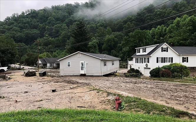 Nhà cửa bị hư hại do lũ quét tại bang Virginia, Mỹ ngày 13/7/2022. Ảnh: Daily Mail