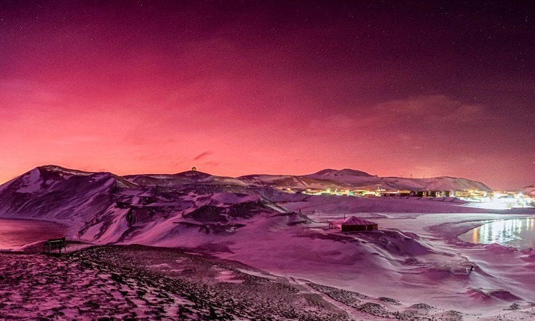 Các nhà nghiên cứu làm việc tại trạm Scott ở Nam Cực ghi lại bầu trời màu hồng do ảnh hưởng sau vụ phun trào núi lửa ở Tonga hồi tháng 1.
