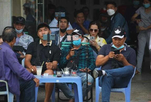 Quán nước đối diện tòa án trở nên đông đúc lạ thường, người ngồi chật kín. Ai nấy đều lăm lăm điện thoại trên tay, liên tục nói chuyện với cư dân mạng, bàn luận về ông Lê Tùng Vân và các “đệ tử”. Đây là cảnh tượng gần như chưa từng xuất hiện trước khi xét xử vụ Tịnh Thất Bồng Lai.