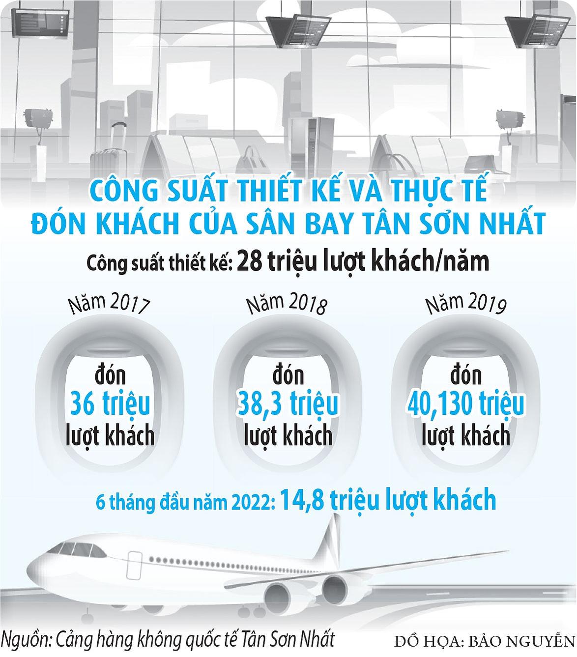 Sân bay Tân Sơn Nhất có công suất thiết kế 28 triệu hành khách/năm, nhưng từ nhiều năm nay luôn đón lượng khách vượt xa công suất, như năm 2017 là 36 triệu khách, năm 2018 đạt 38,3 triệu khách và cao điểm du lịch 2019 lên tới 40,130 triệu hành khách. Theo số liệu mới nhất từ Cảng hàng không quốc tế Tân Sơn Nhất, trong tháng 6.2022, sân bay Tân Sơn Nhất ước phục vụ hơn 3,4 triệu lượt khách bao gồm cả quốc tế và quốc nội, gấp hơn 20 lần cùng kỳ 2021. Tính chung 6 tháng đầu năm, lượng khách qua Tân Sơn Nhất ước đạt gần 14,8 triệu lượt, đạt 52,9% kế hoạch cả năm 2022. Trung bình mỗi ngày, sân bay phục vụ từ 98.000 - 100.000 lượt khách. Kế hoạch cả năm 2022, sân bay Tân Sơn Nhất sẽ phục vụ hơn 28,3 triệu hành khách, tuy chỉ bằng khoảng 70% so với cao điểm năm 2019 nhưng lượng khách quốc tế đến nay gần như không đáng kể. Sự tăng trưởng đột biến dồn vào nhà ga quốc nội khiến nhà ga này quá tải trầm trọng.