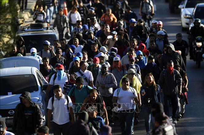 Một nhóm người di cư El Salvador tập trung tại thủ đô San Salvador, chuẩn bị bắt đầu hành trình tới Mỹ ngày 16/1/2019. Ảnh tư liệu: AFP