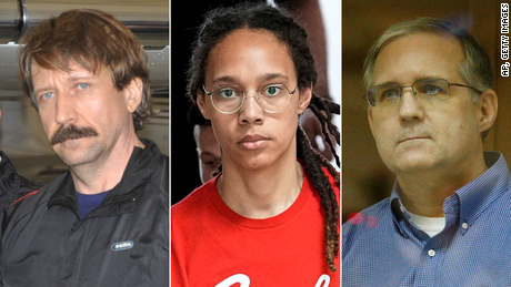 Từ trái qua phải: Viktor Bout, tù nhân người Nga mà Mỹ muốn dùng để đổi lấy ngôi sao bóng rổ Brittney Griner (giữa) và Paul Whelan. Ảnh CNN