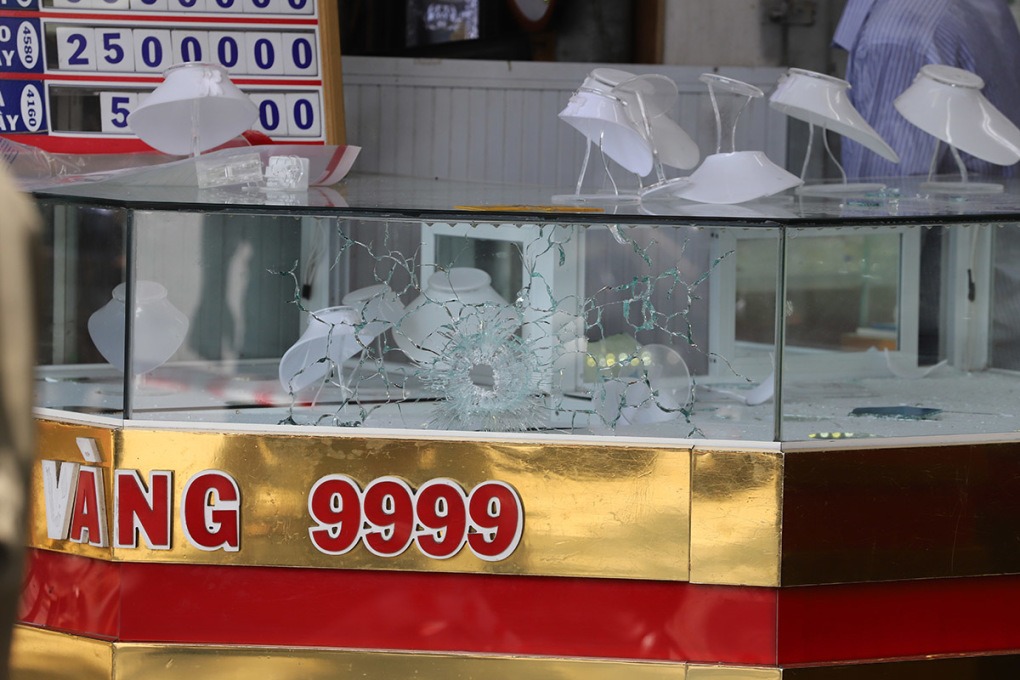 "Lúc đầu thấy hắn lấy súng đập tủ kính, vơ vàng bỏ vào túi nylon đen, tôi cứ nghĩ hắn sẽ bỏ chạy, không ngờ lại đem vứt vàng ra ngoài. Hắn nhiều lần quay lại tiệm lấy cả khay vàng vứt ra đường Trần Hưng Đạo. Nhiều sợi dây chuyền còn mắc trên cây", anh Quang kể.