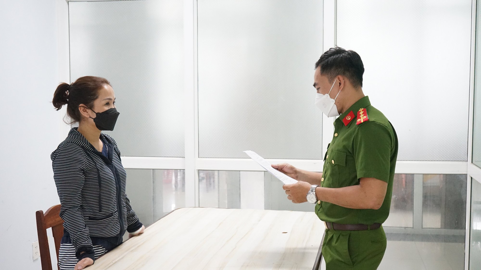 Đối tượng Mai Nữ Lan Ngọc tại cơ quan công an. Ảnh: CACC