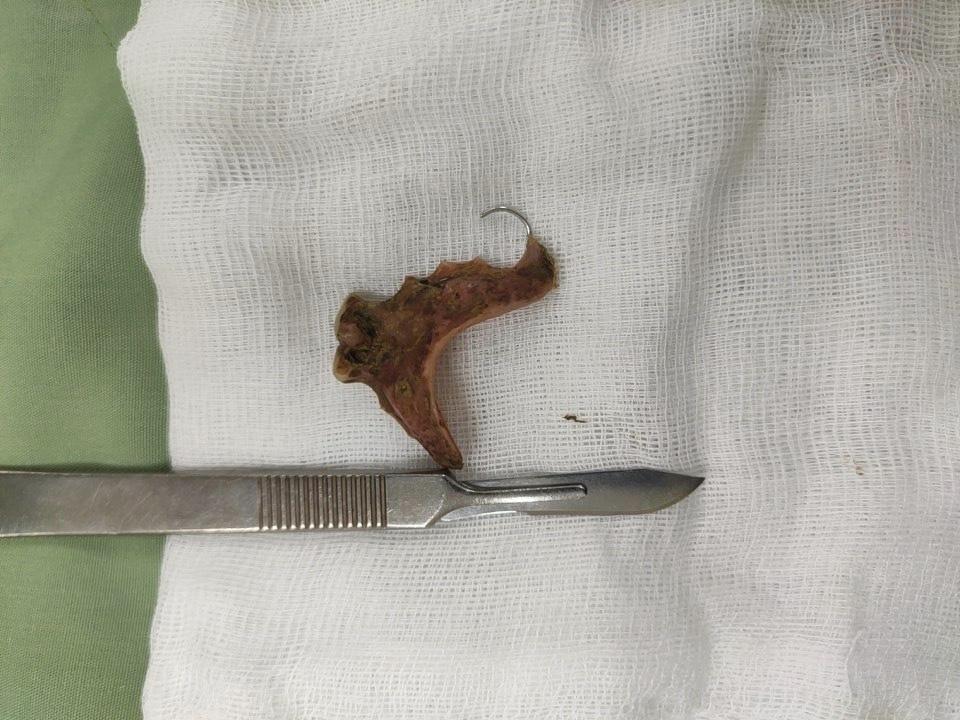 Hàm răng giả được lấy ra khỏi ổ bụng