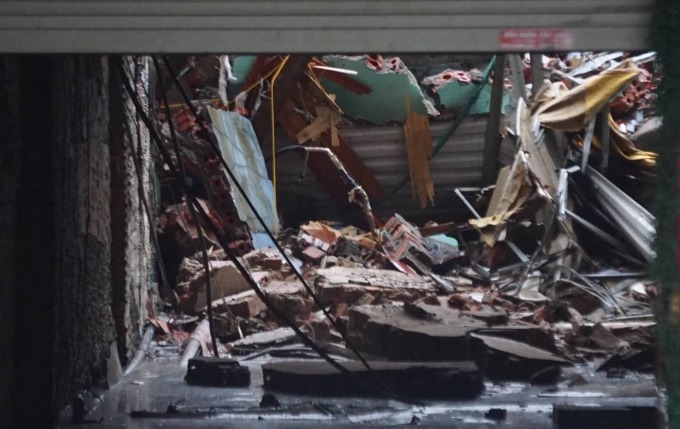 Tường nhà trơ gạch vữa sau vụ sập. Ảnh: Phương Thảo