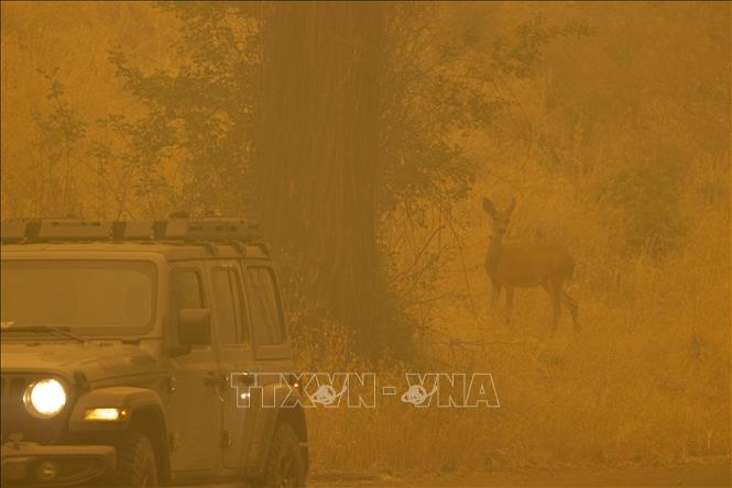 Khói mù dày đặc do cháy rừng ở bang California, Mỹ ngày 31/7/2022. Ảnh: AFP/TTXVN