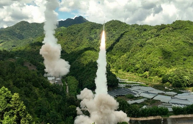 Quân đội Trung Quốc phóng tên lửa trong cuộc tập trận quanh đảo Đài Loan ngày 4/8. Ảnh: Reuters.