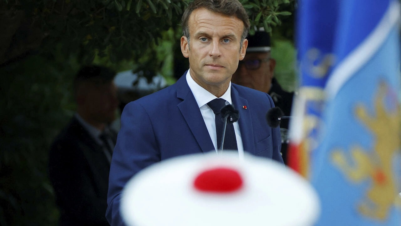 Tổng thống Pháp Emmanuel Macron nói chuyện từ Bormes-les-Mimosas chiều ngày 19/08/2022 về tình hình Ukraina. © AP / Eric Gaillard