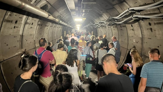 Hành khách Michael Kent cho hay mọi người mắc kẹt vài giờ trên tàu mới được sơ tán và chia sẻ hình ảnh cho thấy đám đông chờ đợi hàng tiếng bên trong toa tàu, đi bộ qua đường hầm trước khi lên xe buýt trở lại ga Folkestone ở Anh.