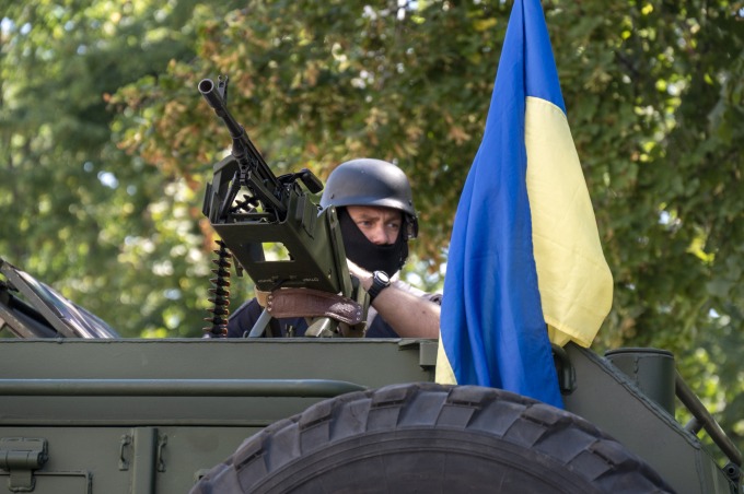 Binh sĩ Ukraine trên đường phố Kharkov hôm 23/8. Ảnh: AFP.