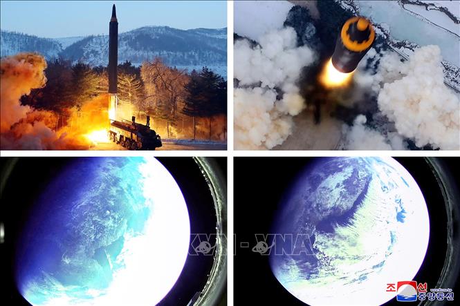 Triều Tiên thử nghiệm tên lửa đạn đạo tầm xa - trung đất đối đất Hwasong 12 tại một địa điểm bí mật. Ảnh: AFP