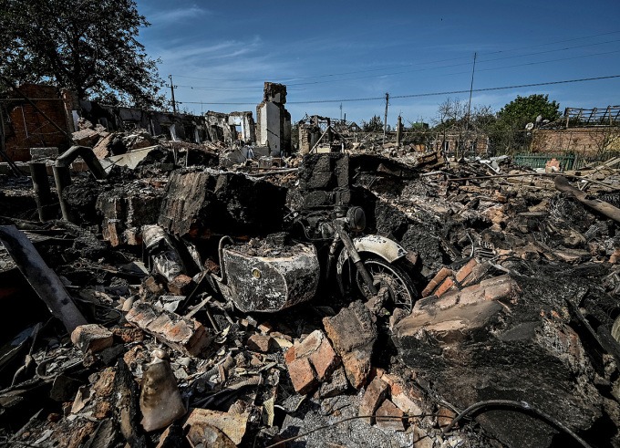 Những ngôi nhà bị phá hủy do pháo kích ở thành phố Orikhiv, tỉnh Zaporizhzhia, Ukraine ngày 27/8. Ảnh: Reuters.