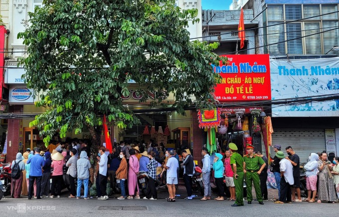 Việc quá nhiều người tập trung đến phố Cầu Đất mua bánh trung thu khiến giao thông ùn tắc. UBND phường Cầu Đất đã cử công an làm nhiệm vụ đảm bảo an ninh trật tự và an toàn giao thông.