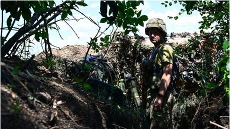 Một người lính Ukraine trong chiến hào ở miền đông Ukraine, ngày 13/7/2022. Ảnh AFP