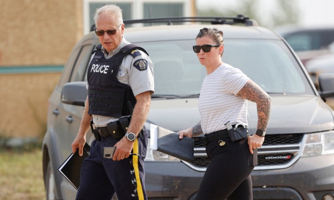 Cảnh sát triển khai tại hiện trường vụ đâm dao ở tỉnh Saskatchewan, Canada, hôm 4/9. Ảnh: Reuters.