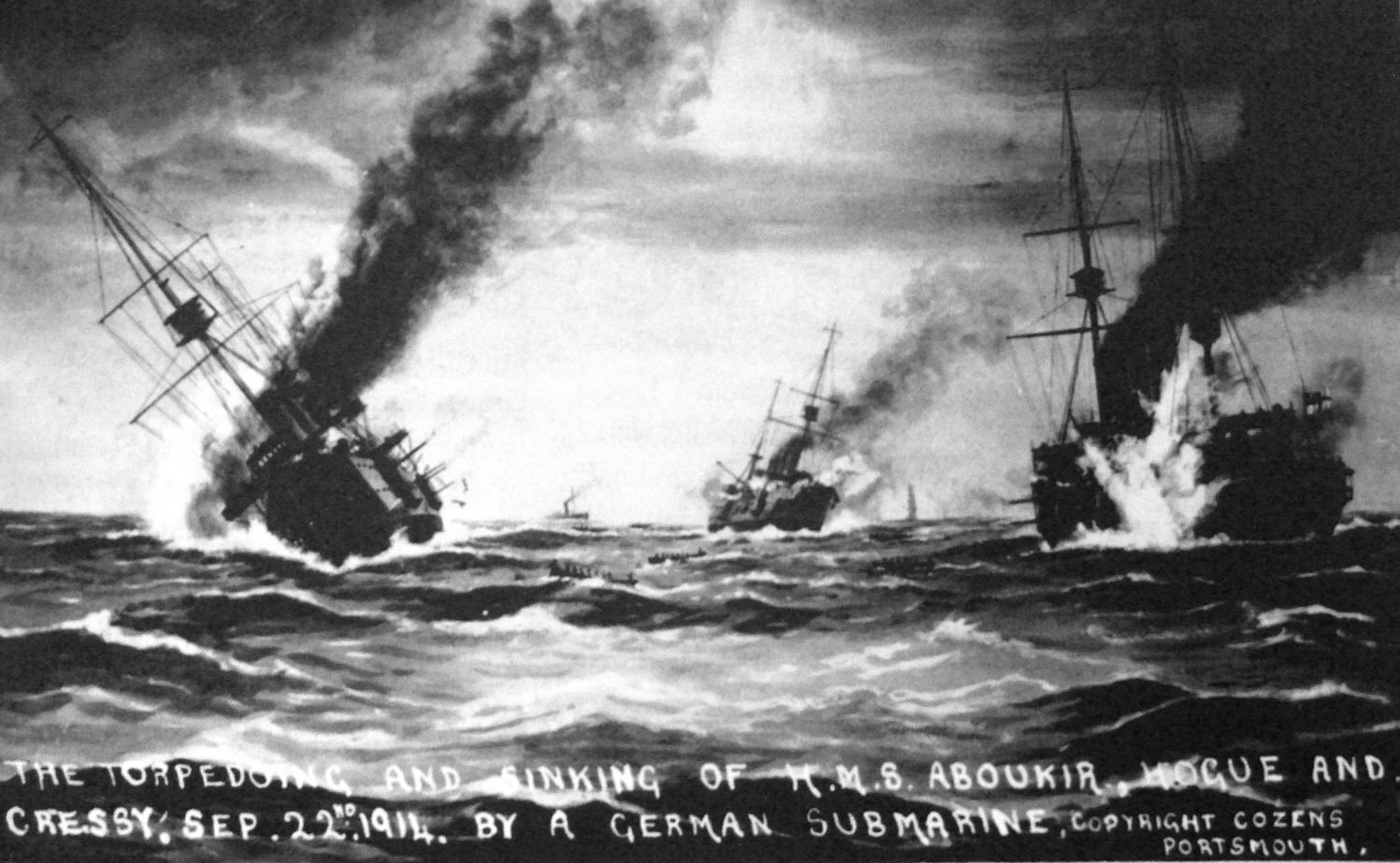 Ngày 22/9/1914, ở Biển Bắc, cách bờ biển Hà Lan 18 hải lý, tàu ngầm Đức U9 dưới sự chỉ huy của đại úy hải quân Otto Eduard von Weddigen đã tấn công và đánh đắm 3 tuần dương hạm bọc thép HMS Aboukir, HMS Hogue, HMS Cressy.