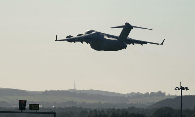 Chuyến bay chở linh cữu Nữ hoàng Elizabeth II từ Edinburgh về London hôm 13/9. Ảnh: Reuters.