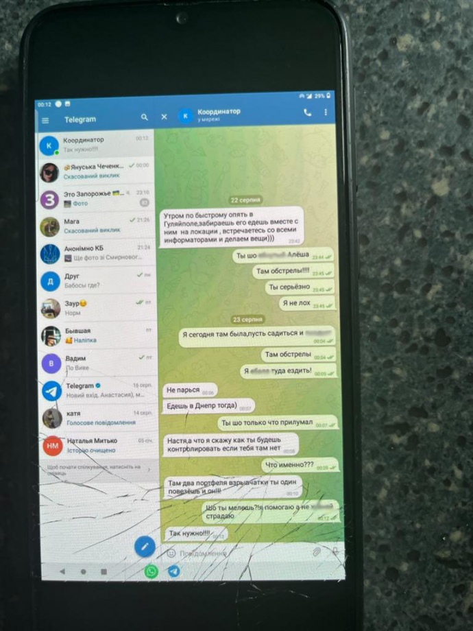 Cô đã lên kế hoạch gửi tọa độ thu được, cũng như dữ liệu về số lượng nhân viên và thiết bị của Lực lượng Phòng vệ Ukraine, cho người Nga thông qua một kênh Telegram ẩn danh được tạo đặc biệt.