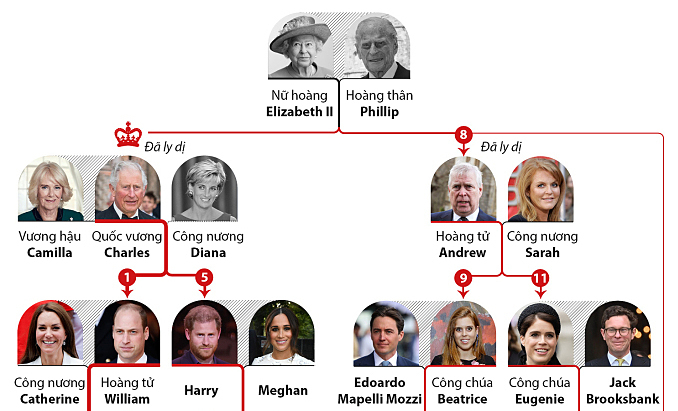 Thứ bậc kế vị ngai vàng Anh sau khi Nữ hoàng qua đời.