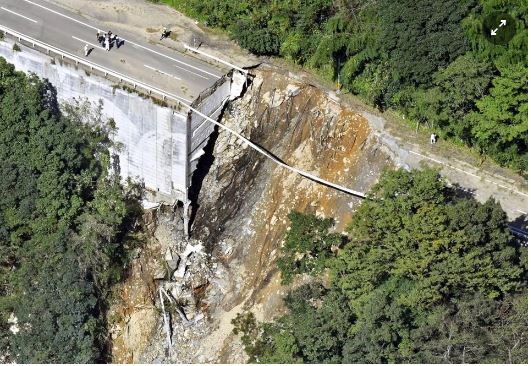 Những thiệt hại mới vừa được ghi nhận ở miền Nam Nhật Bản. Đây cũng là khu vực bão Nanmadol đổ bộ vào cuối tuần qua, trước khi suy yếu và di chuyển lên phía bắc.