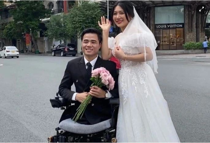Đám cưới cổ tích của chàng trai không chân ở TP.HCM. Anh Đình Khánh (sinh năm 1993) nói rằng cảm thấy may mắn khi được gắn bó với cô gái mạnh mẽ, đầy tình yêu thương và dịu dàng.